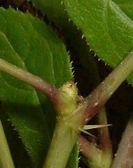 Nodes : These are the critical junction points on a stem. It is at the nodes that leaves are attached and where Axillary Buds are tucked away. If you look at a stalk of bamboo or a corn plant , the nodes are the thickened, ring-like structures that break up the long shaft.